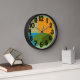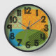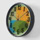 Cette horloge murale a un design moderne du milieu du siècle d'un rectangle, d'un ovale, et d'un parallélogramme avec cercle vide et des lignes parallèles les chevauchant. Vous voulez des couleurs différentes ? Message-moi.