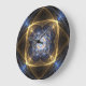 Insufflez votre espace avec une énergie dynamique grâce à cette horloge murale captivante qui présente un design fractal abstrait symétrique. Dans un décor noir profond, la lumière dorée vibrante et la lumière bleue électrique rayonnent vers l'extérieur dans un motif complexe et lumineux. Cette oeuvre numérique présente des structures complexes en couches et des éléments linéaires pointus, créant un sentiment de flux d'énergie puissant et de sophistication moderne. La symétrie précise et la lumière intense en font un point focal unique. Parfait pour ajouter une touche d'élégance futuriste à votre salon, bureau, chambre ou espace créatif, cette horloge est une pièce de déclaration qui combine fonction et art visuel saisissant. C'est plus qu'une simple façon de dire le temps, c'est un morceau de décoration fonctionnelle qui reflète une passion pour la beauté abstraite et le design de pointe. Laissez cette horloge attrayante transformer votre mur et vous garder dans le calendrier dans le style.