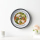 Funny kitchen wall clocks with a graphic of Grandma's best realistic looking chicken soup in the background and trendy clock face markings and text that says Grandma's Kitchen you can personalize if you like.