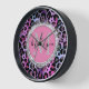 Un ombrage ombrage rose violet empreinte de léopard avec une sphère rose dans la parties scintillant argentée au milieu, où vous pouvez le personnaliser avec une lettre et un nom pour le rendre unique. Vibes de poules de verre.