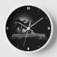 Une voiture convertible Chevy classique des années 60 en noir à l'extérieur d'un graphique de palmiers blancs/noirs. Il suffit de choisir votre style d'horloge et avant le départ.