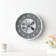 Cette horloge murale ronde présente un art fractal abstrait, à l'ombre monochrome, sur un arrière - plan gris avec des chiffres blancs.