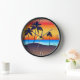 Horloge Île tropicale au coucher du soleil avec palmiers