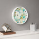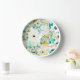 Horloge Joli Art folklorique Fleurs blanches et turquoise