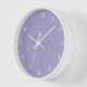 Un design moderne et minimaliste d'horloge murale avec un bel arrière - plan de lavande claire et des chiffres blancs. L'ajout parfait à n'importe quelle maison ou entreprise.