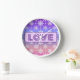 Horloge LOVE Typographie Snowflakes violet