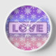 Love Typographie Snowflakes Purple Horloge