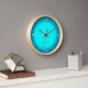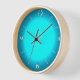 Un design aqua bleu lune rafraîchissant avec des chiffres en or bronze. Cette horloge est rehaussée par un cadre en bois naturel. Customiser pour changer les couleurs de la main et du cadre.