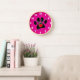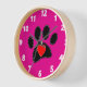 Joli chien noir empreinte de patte et dessins au coeur rouge. Version arrière - plan rose chaud. Horloge murale décorative personnalisée. Tout ce qui est vu est imprimé. aucune couture réelle ne sera utilisée dans la fabrication. Idée cadeau pour les femmes qui aiment les chiens.