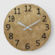 Un motif d'or clair et jaune foncé à l'aspect métallique orne cette horloge murale dans un motif circulaire ondulé, ce qui lui donne l'air de briques d'or. J'ai peint la peinture originale du mélange d'or, puis je l'ai modifiée avec un logiciel d'artiste pour réaliser le motif d'onde. Il a un aspect riche et élégant et de grands nombres noirs. Achetez en ligne chez CherylsArt sur Zazzle.