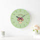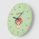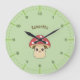 Une horloge murale verte avec des chiffres, une illustration d'un mignon champignon dans le style dessin animé texte personnalisable ci-dessous! C'est une excellente façon de rendre la chambre d'un enfant amusante !