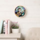 Horloge ronde 25,4 cm avec cadre en bois naturel
