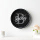 Horloge Monogramme moderne élégant Nom noir Gris noir Scri