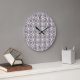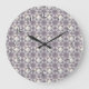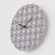 Blocs de courtepointe en motif "spool" violet et blanc. Huit bobines tournent autour d'un centre de violet foncé. Un imprimé de fleurs violettes est le "fil" de la bobine. Sans cadre pour chaque bloc, le motif donne un effet kaléidoscope. Des chiffres blancs avec des ombres-gouttes s'installent au-dessus de la courtepointe.