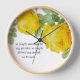Cette horloge murale présente une peinture vintage de roses jaunes et une citation de Leo Buscaglia. Achetez cette horloge murale conçue pour l'amitié comme cadeau de pendaison de crémaillère ou d'anniversaire.