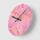 Cette image présente une aquarelle florale douce et élégante. La motif est dominée par des teintes roses délicates, se mélangeant harmonieusement avec des oranges claires et des violets. Il présente des fleurs inspirées de la fleur de cerisier dans différents niveaux de transparence, créant un effet de superposition rêveur. De minuscules formes étoilées et des éclats de lumière doux apportent une touche de fantaisie, ce qui renforce l'esthétique éthérée globale. Ce design serait parfait pour une horloge murale, apportant un sentiment de calme et de beauté à la chambre. Sa palette de couleurs apaisante et ses détails artistiques le rendent adapté à des intérieurs modernes et vintages.
