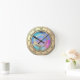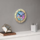Une horloge murale qui a une image des rouages intérieurs et la face d'une autre horloge. petit design mignon qui fait qu'il ressemble à vous regardez à travers l'horloge.