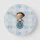 Créez une horloge murale unique pour votre maison ou votre nurserie avec des couleurs bleues, du vichy et un ours en peluche chic décontracté. Fait partie de la collection de modèles Bear Jean Baby. Utilisez le modèle pour ajouter votre monogramme souhaité.