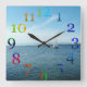 Horloge murale à chiffres colorés avec une photographie de plage en arrière-plan. Cette horloge à chiffres clairs et joyeuse est un excellent choix pour la chambre des enfants, les salons, la cuisine, etc.