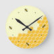 Horloge murale personnalisée pour la chambre d'un enfant avec une jolie illustration d'abeilles et de nid d'abeille. Disponible en trois styles différents, vous pouvez également personnaliser cette horloge amusante avec du texte et/ou des images personnalisés ou changer la couleur arrière - plan.