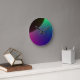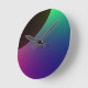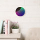 Cette super horloge présente une image numériquement qui ressemble au croissant d'une planète sombre entourée d'une aurore cosmique de vert, bleu, violet et rose.