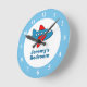 Horloge murale avion jouet pour chambre d'enfants ou nurserie bébé. Design à thème aviation. Illustration d'avion de ligne. Horloge murale ronde personnalisée avec avion et nom personnalisé de l'enfant. Idée cadeau de baby shower ou 1er anniversaire pour la chambre des petits garçons. Décoration d'illustration d'avion avec nom ou monogramme personnalisable. Décoration murale pour chambre d'enfants. Créez votre propre cadeau unique pour petit-fils, neveu ou petit pilote fils.