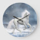 une licorne blanche pataugeant dans l'eau - la mer est très rugueuse et une tempête s'approche