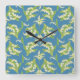Une horloge murale Carré chic dans le style Art Nouveau, avec Lilies-of-the Valley sur un arrière - plan bleu ; de la collection Posh & Painterly "For the Love of Lilies".