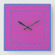 Horloge murale carré, Magenta : Points bleus clair