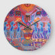 Rituel Peyote Huichol, Horloge murale, Horloge murale Huichol, Horloge murale tribale, Horloge murale Wicca, Horloge murale rituel Peyote, Virginia Vivier, Art populaire Vagabond, Art populaire tribal, Art populaire Huichol, Horloge murale design mexicain