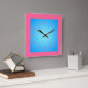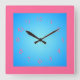 Une bordure rose cerice avec un cadran bleu clair illuminé et des chiffres roses.