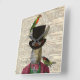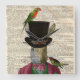 Page vintage de dictionnaire avec la copie d'un lapin vintage portant un costume coloré. L'illustration animale vintage a également les oiseaux vintages colorés. L'arrière - plan est une page antique originale de dictionnaire.