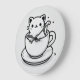 Ajoutez du charme et de la personnalité à votre espace avec cette adorable horloge murale représentant un chat dans une tasse à thé. Représentant un mignon chaton dessiné à la main dans un style doux niché dans une tasse confortable, cette illustration en noir et blanc allie une fantaisie ludique à un design minimaliste épuré.