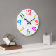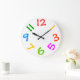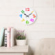 Cette horloge murale colorée serait grande pour la chambre à coucher ou la salle de jeux d'un enfant.