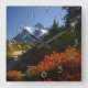 Cette horloge carré présente un magnifique paysage d'automne, y compris un sentier randonnée, feuillage rouge et or, et le mont Shuksan dans l'arrière - plan.