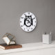 Horloge murale design hibou noir et blanc. Vous pouvez customiser cette horloge murale avec n'importe quel texte de votre choix. Si vous avez besoin d'aide pour vous customiser, contactez-nous via le lien de cette page. Horloge murale design de hibou.
