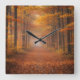 Horloge douillette de la forêt d'automne avec des feuilles dorés et oranges. Un garde-temps chaleureux et paisible pour la décoration saisonnière