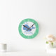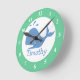 Horloge murale de pépinière avec numéros, imprimé de baleine et nom de bébé. Idée de cadeau pour la petite chambre pour enfants. Décor de pépinière bleu et vert avec nom personnalisé. dessin animé d'animaux de vie marine.