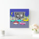 Passe le popcorn ! Cette horloge murale de film Drive-In de la petite ville vous transportera à une époque plus simple, où le gaz était bon marché, le rock and roll était jeune, et les stars de cinéma de l'âge d'or d'Hollywood brillaient plus brillamment que le ciel nocturne. Le design présente la vue arrière de cinq voitures rétro pratiquement indestructibles aux couleurs rouge, rose, turquoise, jade et jaune. Devant les voitures se trouve un écran géant de cinéma, montrant un film noir et blanc, avec deux amoureux croisés d'étoiles en manteaux casquettes et de tranchées. Dans le arrière - plan, il y a une clôture grise, une clôture de piquets de grève, une rangée de vert, de cèdres, un ciel bleu royal et une lune jaune croissant. Nous espérons que vous avez apprécié notre présentation!