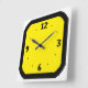 Horloge murale personnalisée pour les geeks de l'ancienne école avec 8 bits jeu vidéo arcade style pixels horloge face. L'arrière - plan jaune peut être changé en n'importe quelle autre couleur.