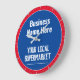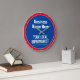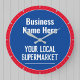 Horloge murale pour un magasin de village, supermarché local, magasin de proximité, ou épicerie locale. Modifiez le design pour changer la formulation à votre guise. Couleurs bleue et rouge.