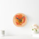 Cette horloge impressionnante présente une belle photo d'une tulipe orange en pleine floraison. La photo a été prise en utilisant la macro photographie pour vraiment mettre en évidence les nuances subtiles d'orange dans cette fleur et le détail fin de ses pétales. La fleur a été coupée de la photo et mise sur un arrière - plan orange pâle pour rehausser sa beauté.