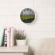 Horloge murale avec cadre blanc affichant les terres agricoles en couleur partielle