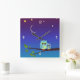 Un hibou bouffe avec il est petit sous un ciel crépusculaire d'étoiles scintillantes. Oeuvre originale de la ménagerie de Night Owl, 2010.