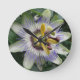 Cette horloge impressionnante présente une photo très détaillée d'une belle et exotique fleur de passion. La photo a été prise en utilisant la macro photographie résultant en une image si détaillée que vous pouvez voir chaque pétale frangé individuel. Les couleurs de l'image sont vives et vives.