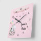 Jolie horloge murale rose pour une chambre de jeunes filles. L'horloge a un design de nuages, "une licorne", étoiles, marguerites et un nom qui peut être changé. Merci à Creative Fabrica pour certains des éléments du design.
