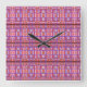 Horloge murale de Carré de Motif de forme incurvée par Kristie Hubler, motif de conception de tissu 42" x 36", avec fleurs, lignes de plaid, spirales, perruques, tourbillons, courbes S et points. Très féminine. Il s'agit de croissance, de floraison, de création, de puissance