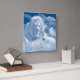Lion et agneau dans le ciel avec horloge murale nuageuse.