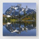 Cette horloge murale carré présente une belle image du Mont Shuksan reflétée dans Picture Lake.