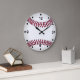 Grande horloge murale conçue pour ressembler à un baseball géant, avec des nombres et des points en noir. Customisez d'ajouter le texte que vous voulez. Idéal sur tous les murs de salle de sport ou de base-ball.